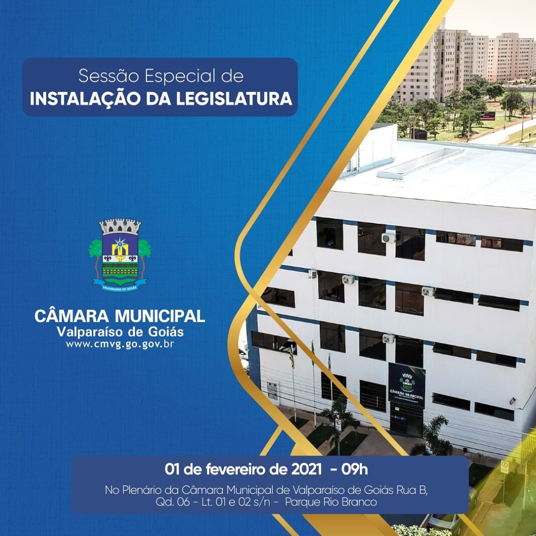 A Câmara Municipal de Valparaíso de Goiás realiza na próxima segunda-feira, dia 1 de janeiro, a sessão especial de instalação da 7ª Legislatura. Além disso, a mesa diretoria será apresentada juntamente com os vereadores empossados que atuarão na Casa de Leis de 2021 a 2024.