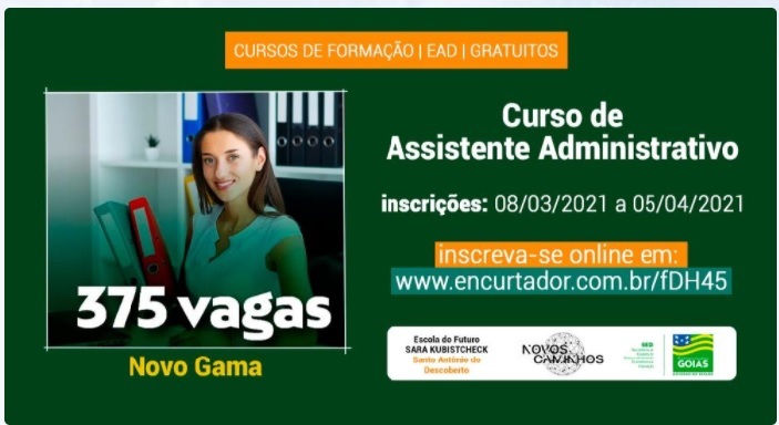 A Secretaria de Promoção Social e Cidadania do município de Novo Gama, juntamente com a Secretaria de Estado de Desenvolvimento e Inovação (SEDI), está oferecendo 375 vagas para o curso de Assistente Administrativo para os moradores do nosso município.