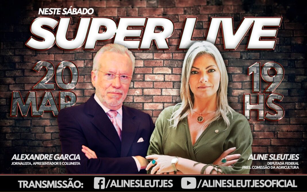 A Deputada Federal Aline Sleutjes, presidente da Comissão de Agricultura da Câmara dos Deputados, realiza neste sábado, 20 de março, uma grande live com o jornalista, apresentador e colunista Alexandre Garcia.
