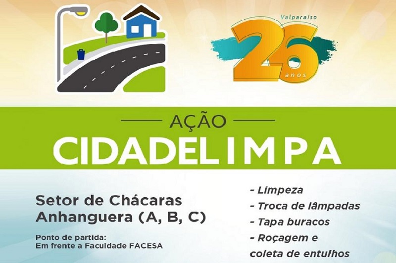 O Governo da cidade de Valparaíso de Goiás, por meio da Secretaria Municipal de Infraestrutura, Habitação e Serviços Urbanos e demais pastas municipais, promove nesta quarta-feira (23), a partir das 7h30, a Ação Cidade Limpa.