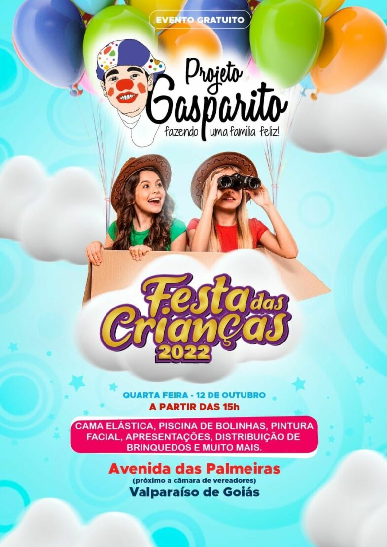O Projeto Gasparito promove nesta quarta-feira, 12 de outubro, um evento em homenagem ao Dia das Crianças, conhecido como “Festa das Crianças 2022”.